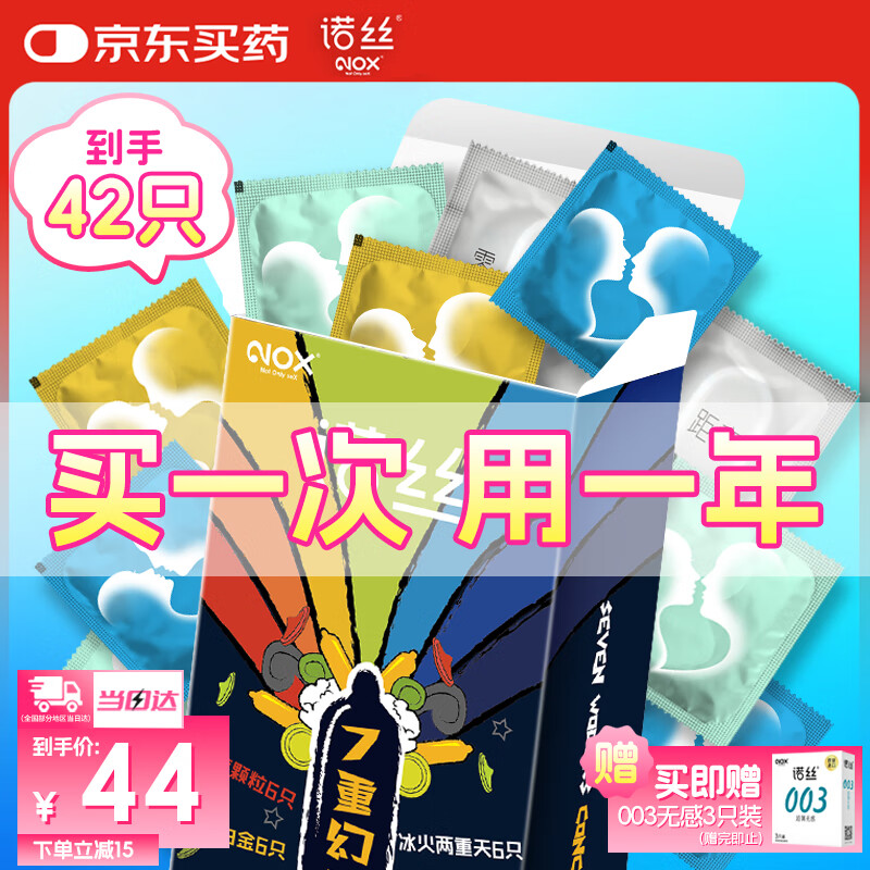诺丝 避孕套安全 7重幻想42只超薄大颗粒润滑套套男用成人计生用品