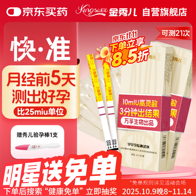 金秀儿早孕试纸20条 验孕棒早早孕 验孕测孕试纸 高精度hcg翻倍检测
