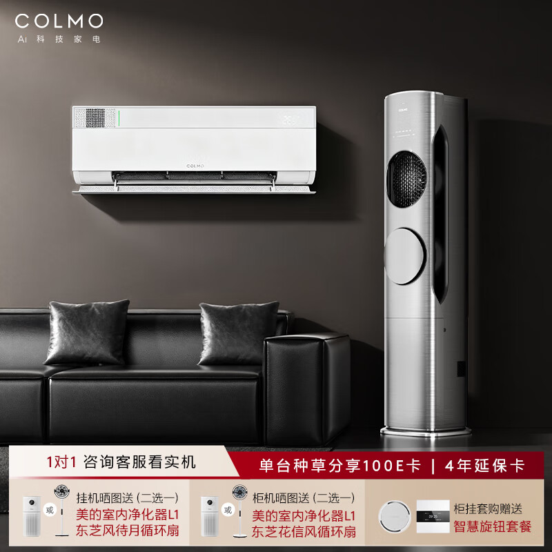 COLMO空调柜挂套装 舒适风健康风无风感 一级能效 1.5匹挂机北极星CA3K+3匹柜机黑珍珠CA1Z(一室一厅)