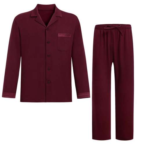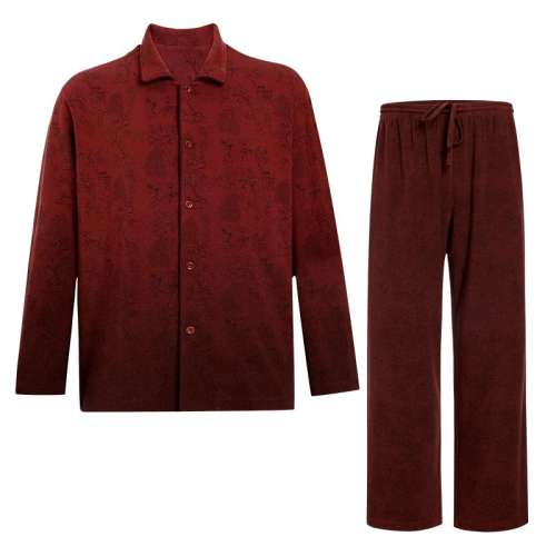 暗红色J1D 170 爱慕先生25秋冬牛奶生活家居睡衣男士翻领开衫长袖长裤红品套装