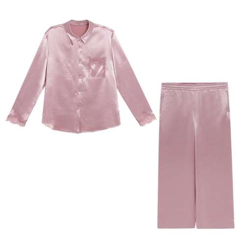 云柔粉6JA 160 爱慕观棠秋冬睡衣女翻领开衫长袖可外穿家居分身套装AM46C361
