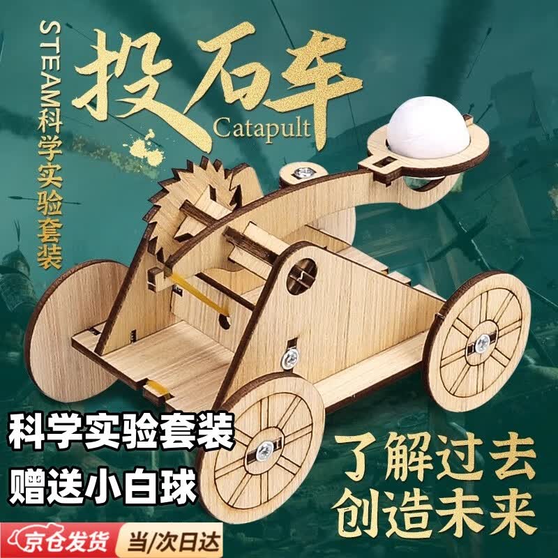 花乐集古代投石车小学生科学实验 手工diy制作材料包投石机攻城器械木质 投石机套装+小白球