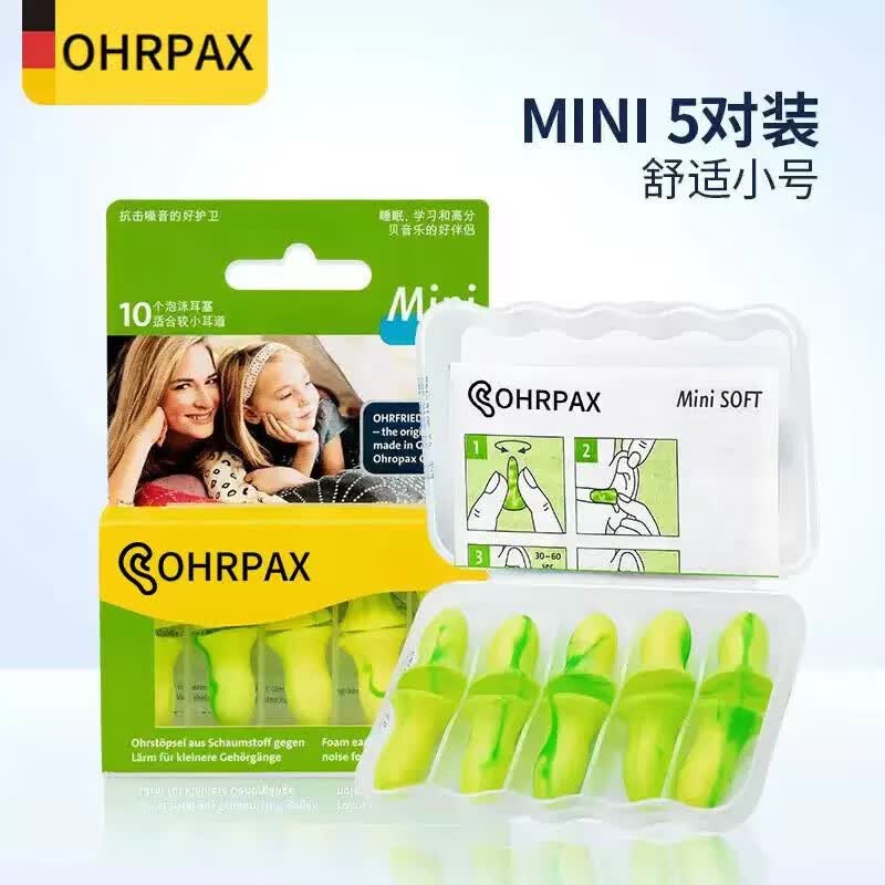 安耳悠mini 德国ohropax隔音耳塞安耳悠小号睡眠专用... 荧光绿2副拆分装 mimi款2副 +送收纳盒