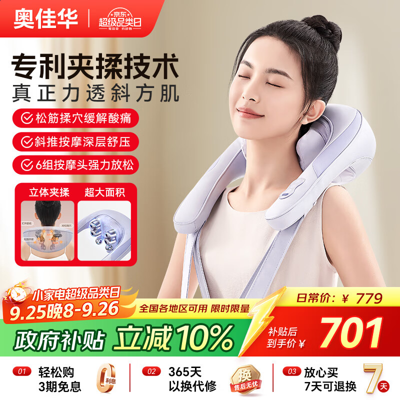 奥佳华(OGAWA)颈椎按摩器多功能肩颈斜方肌颈脖子腰部背部肩膀加热按摩仪手持式送老人父母老婆礼物生日礼品2608 【专业松筋揉穴-高端款】暮山紫