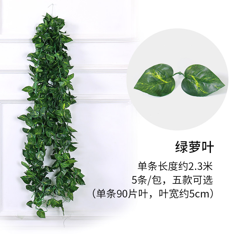 初衷绿叶藤假绿色植物藤蔓电线美化绿色叶子室内仿真叶塑料装饰品藤花 绿萝叶 长约230cm,90片叶,叶宽约5cm