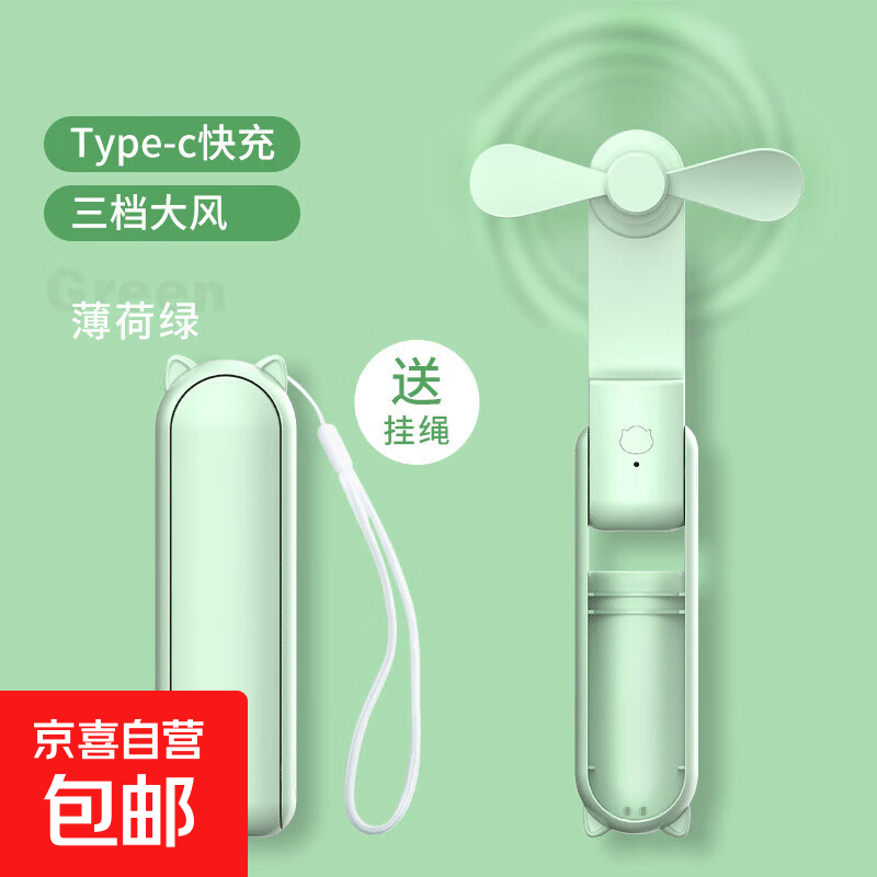 折叠小风扇网红手持迷你小电风扇暑假学习工作游玩好伙伴 叶子风扇绿色