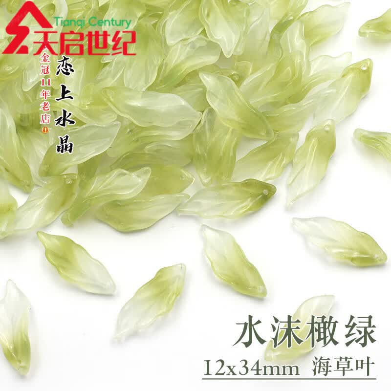 唄硶手工发簪20颗12x34mm海草叶琉璃树叶子花瓣diy古风制作材料配饰 水沫橄绿 颜色偏黄 大号B款 20颗