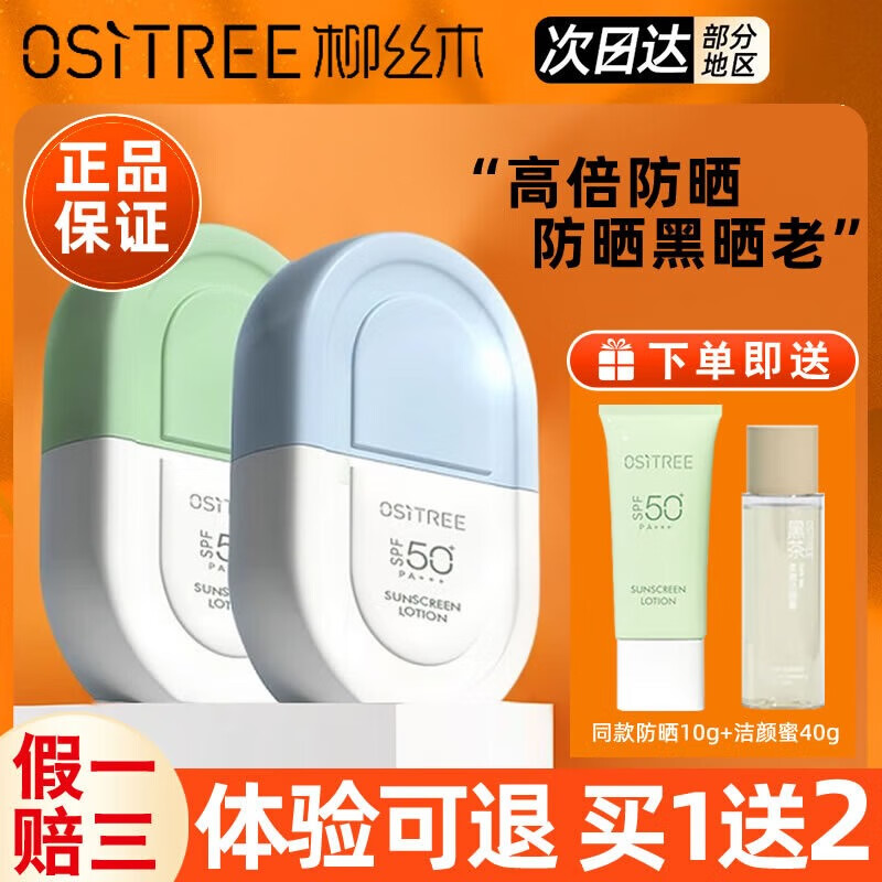 柳丝木(Ositree)雪糕防晒乳防晒霜露隔离spf50+面部清爽水润女 美白防晒(绿U盾)50g[2支装]