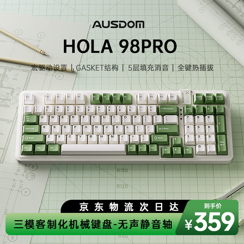 阿斯盾98Pro静音轴体机械键盘游戏电竞办公三模有线蓝牙无线客制化键盘全键无冲热插拔gasket结构绿白