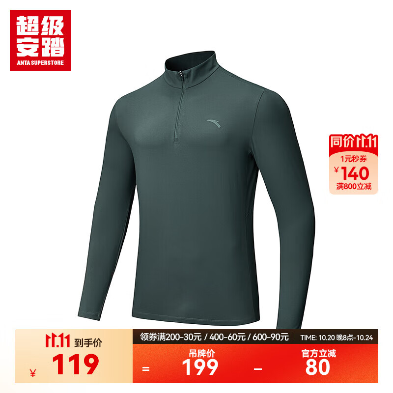超级安踏甲壳盾抗菌长T丨男士安踏秋季半开领拉链运动通勤长袖T恤套头衫 【甲壳盾抗菌】枯藤绿5412-2 M /男170