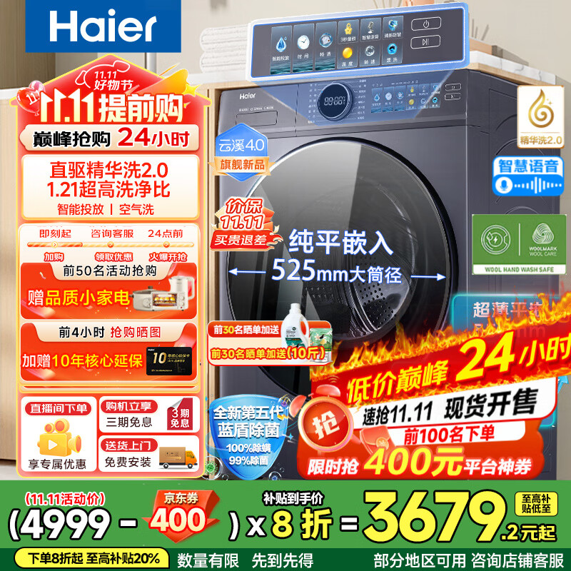 海尔(Haier)云溪洗衣机77E全自动滚筒洗衣机10kg直驱超薄洗烘一体活水精华洗羊毛绿标 以旧换新国家补贴20% 洗烘活水精华洗+1.21洗净比+蓝盾除菌+智能烘干
