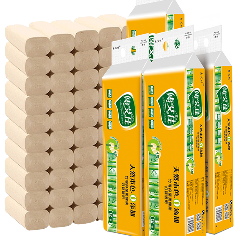 惠艾佳 卫生纸48卷纸巾4层加厚厕用手纸家庭装本色竹浆无芯卷筒厨房纸抽 4提48卷实惠装(约85%客户购买)