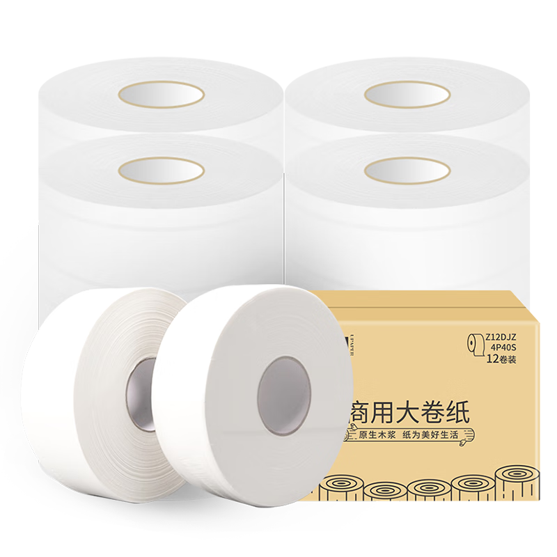 纸约大卷纸商用4层约335克*12卷大盘纸有芯卷筒纸厕纸大圈卫生纸整箱