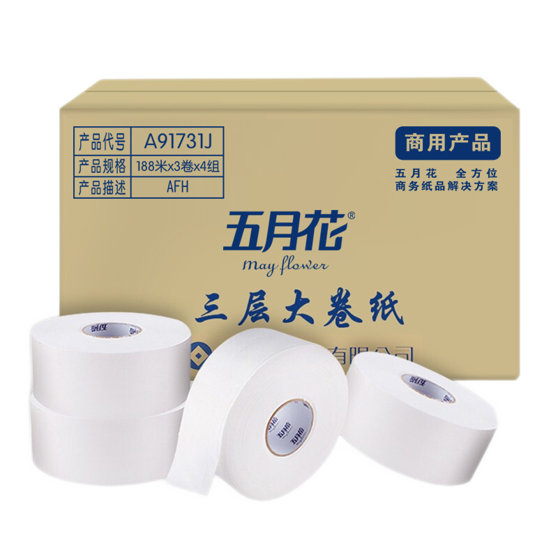 五月花(May Flower)有芯卷纸 3层188米*12卷大盘纸 约750g商务用纸卫生间厕纸 整箱装