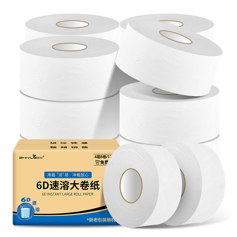 纸约大卷纸厕纸商用大盘纸卫生间厕所手纸可溶性有芯卫生纸巾速溶卷纸 6卷【速溶6D立体美】