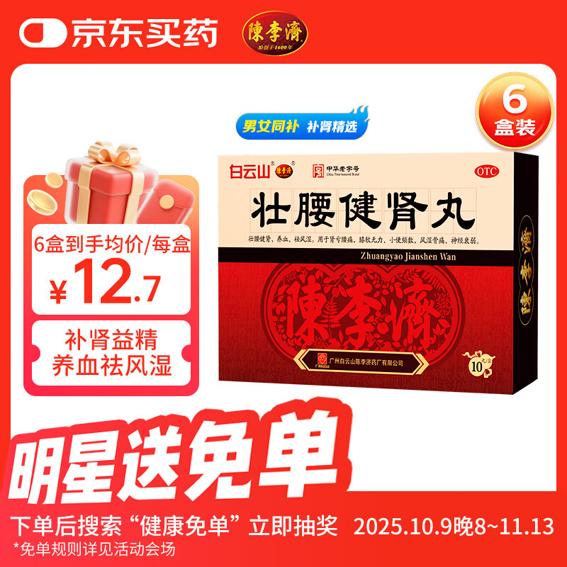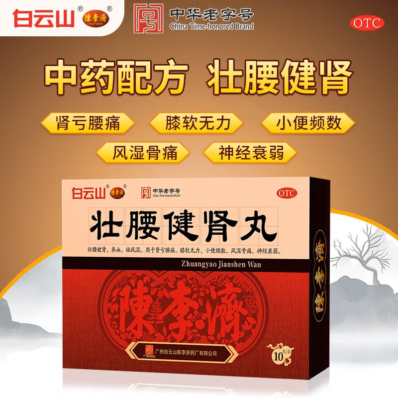 [陈李济] 壮腰健肾丸 5.6g*10丸/盒 白云山壮腰健肾丸 肾亏腰痛膝软无力小便频数风湿骨痛 3盒装【小便频数风湿骨痛】
