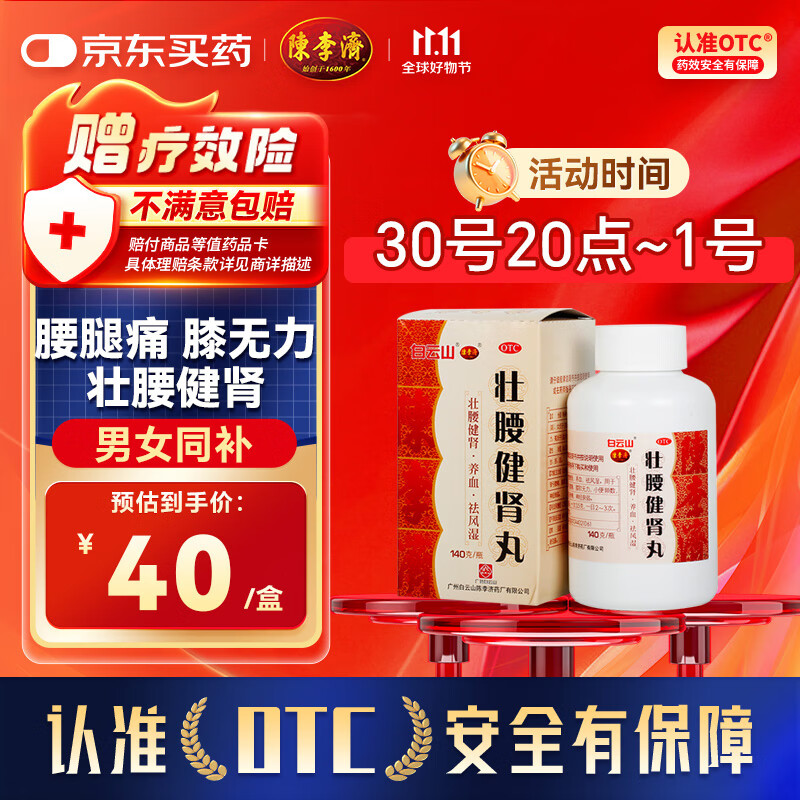 百亿补贴:白云山 陈李济 壮腰健肾丸140g/瓶养血祛风湿 肾亏腰痛 膝软无力 小便频数 风湿骨痛 神经衰弱 2盒(效期至27年11月)