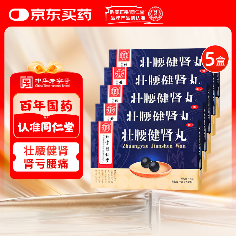 同仁堂(TRT)同仁堂 TRT 5盒装 壮腰健肾丸 5.6g*10丸 壮腰健肾 养血 祛风湿 肾亏腰痛 膝软无力 风湿骨痛 神经衰弱