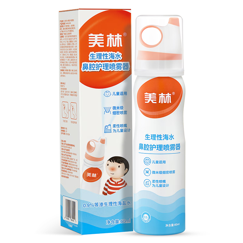 美林海盐水鼻腔护理喷雾器儿童生理盐水洗鼻器鼻炎喷剂60ml*1盒