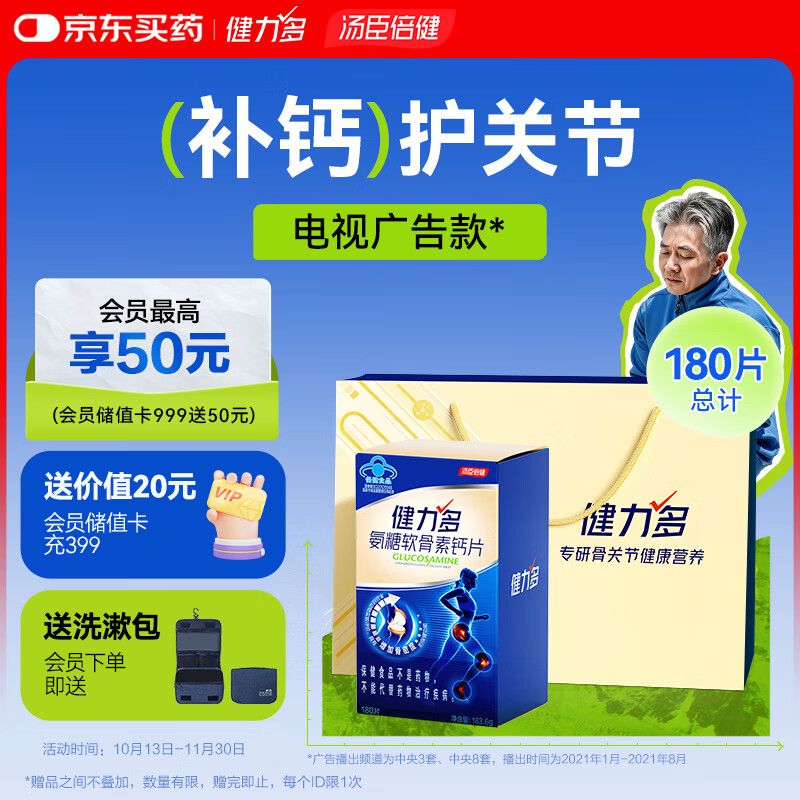 健力多汤臣倍健氨糖软骨素钙片180增骨密度护关节中老年效期至26年12月