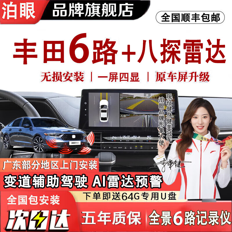 泊眼适用丰田720度6路摄像头行车记录仪倒车影像360全景影像系统 丰田6路720全景+专用八探雷达