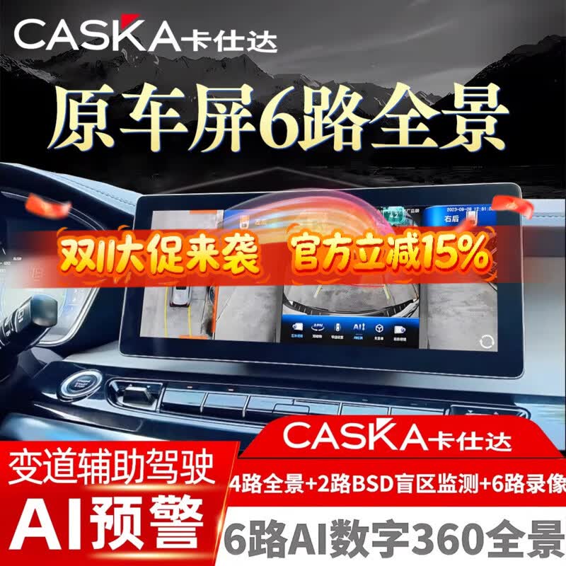 卡仕达(CASKA)汽车原车屏6路360全景影像系统行车记录仪720全景倒车影像CMS盲区 通用普通车型 6路720度全景 打孔 原车屏升级CMS 6路720度全景
