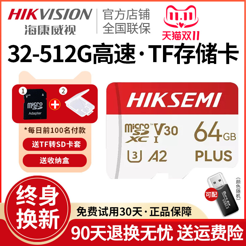 HIKSEMI海康存储 TF卡Micro SD行车记录仪监控内存卡海康 萤石存储卡摄像头通用闪存卡高速内存卡100MB/s 【高性价比】64G D10 Plus读速100MB