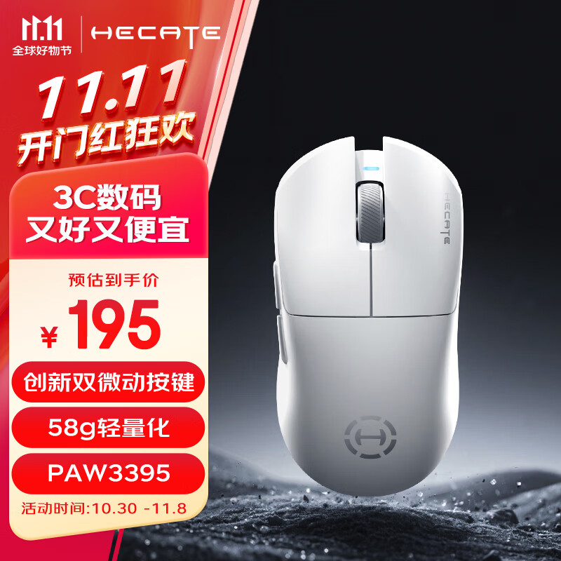 漫步者(EDIFIER)HECATE G3Mpro升级版无线有线蓝牙三模电竞办公游戏鼠标3395双微动轻量化长续航csgo吃鸡 极光白