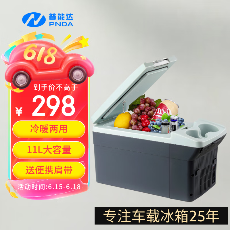 普能达(PNDA)车载冰箱11L冷暖扶手冰箱便携冷藏箱车用灰