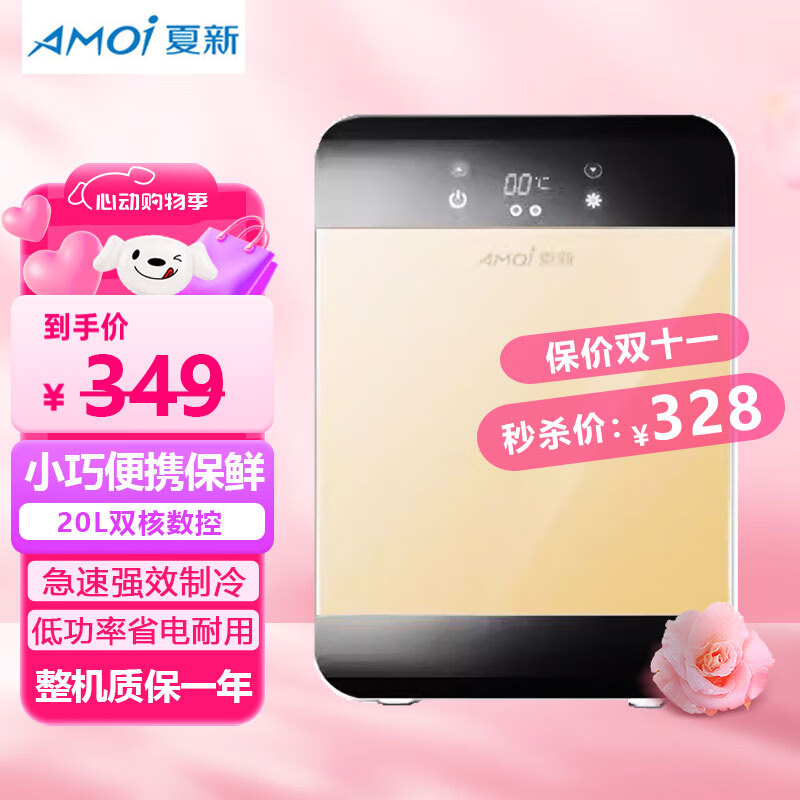 夏新冰箱迷你小车家两用车载 母乳冷藏学生宿舍租房办公室家用电冰箱 20L金色车家两用双核数控 20升
