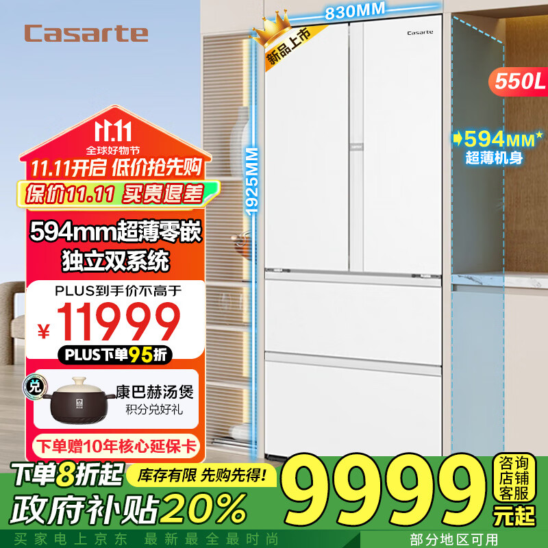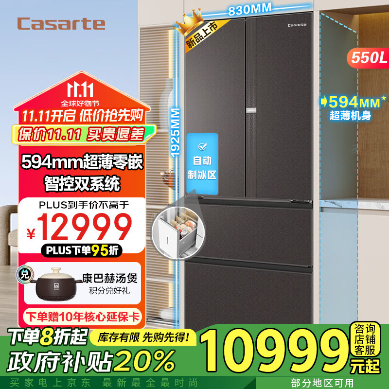 以旧换新补贴卡萨帝原石550L大容量零嵌入式法式多门家用电冰箱