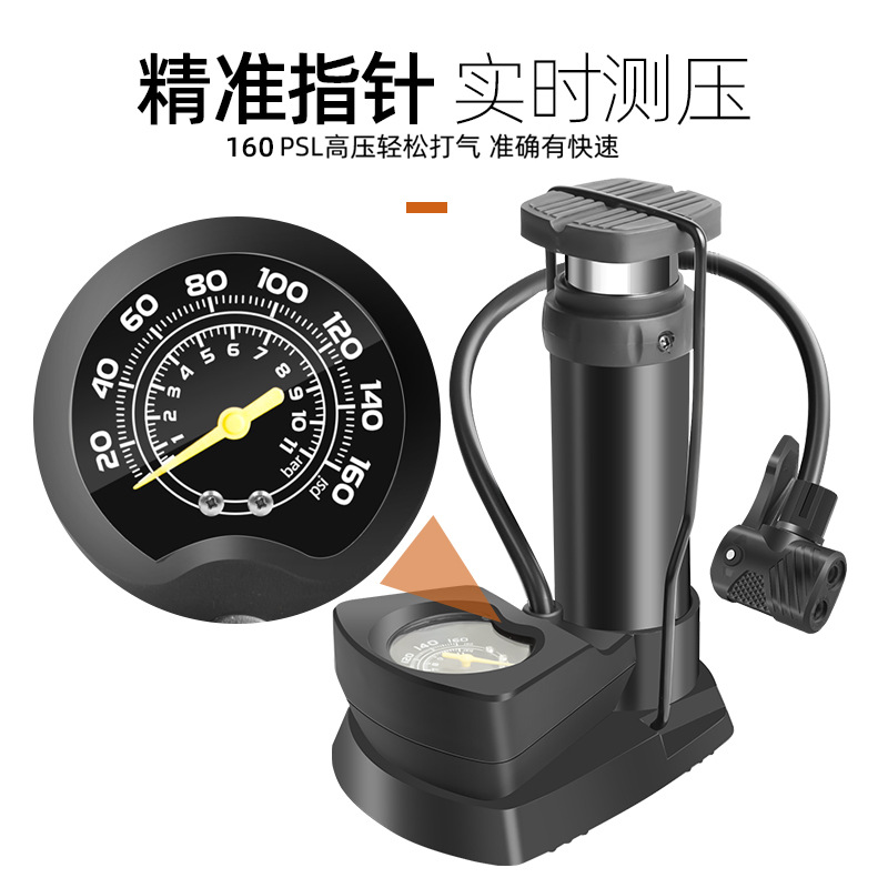 车载脚踩充气泵摩托车自行车电瓶车脚踩打气筒胎压检测脚踩打气泵
