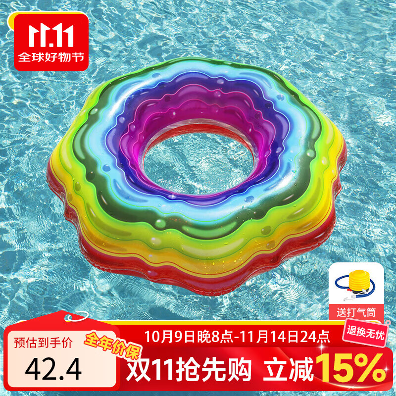 Bestway游泳圈大人充气戏水加厚成人救生圈甜甜圈游泳装备 布丁泳圈(90-220斤)+小黄泵
