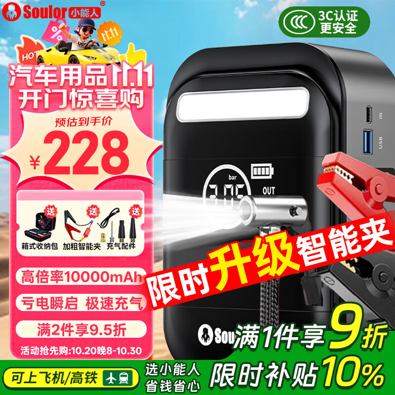 小能人(soulor)【3C认证】汽车应急启动电源充气泵一体机应急搭电宝汽车电瓶充电器轮胎打气泵应急汽车启动