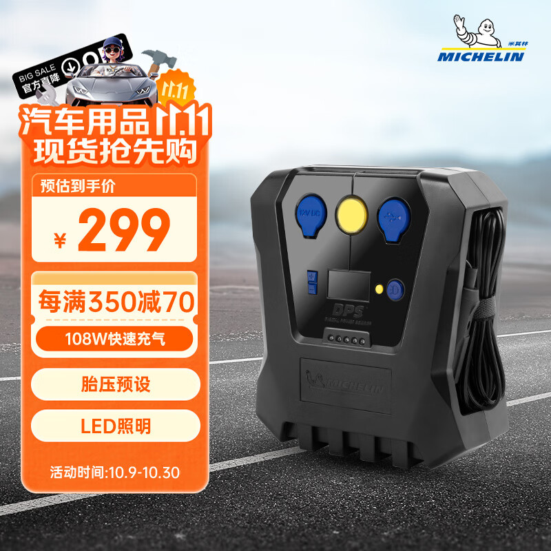 米其林优先车载充气泵汽车用打气泵便携式摩托电瓶自行车家用轮胎