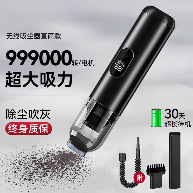 影巨人车载吸尘器【吸尘充气二合一】2025新款大吸力便携式大功率手持无线车家两用汽车吸尘器充气泵 吹吸两用+智能数显+两档调节