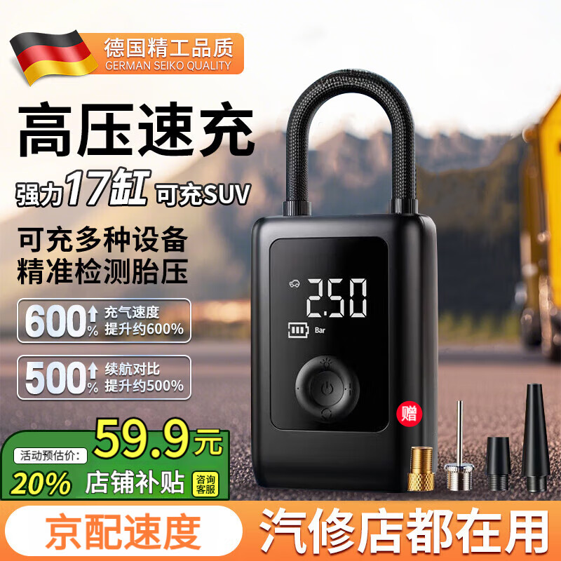 百亿补贴:世帅车载充气泵无线电动胎压打气筒电动车小米汽车轮胎充电充气宝