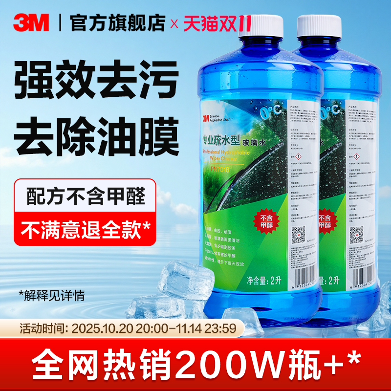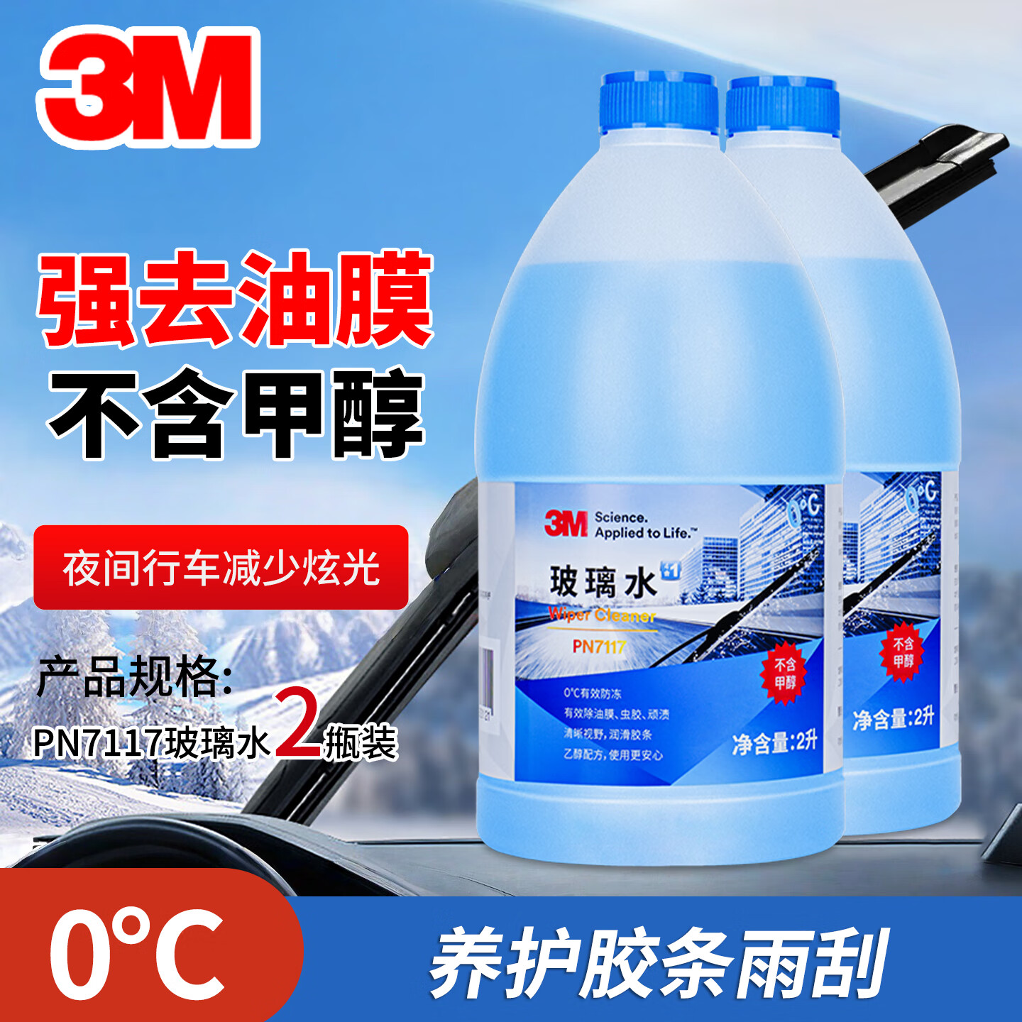 3M强力去油膜7117玻璃水汽车专用乙醇配方四季通用雨刮水2瓶