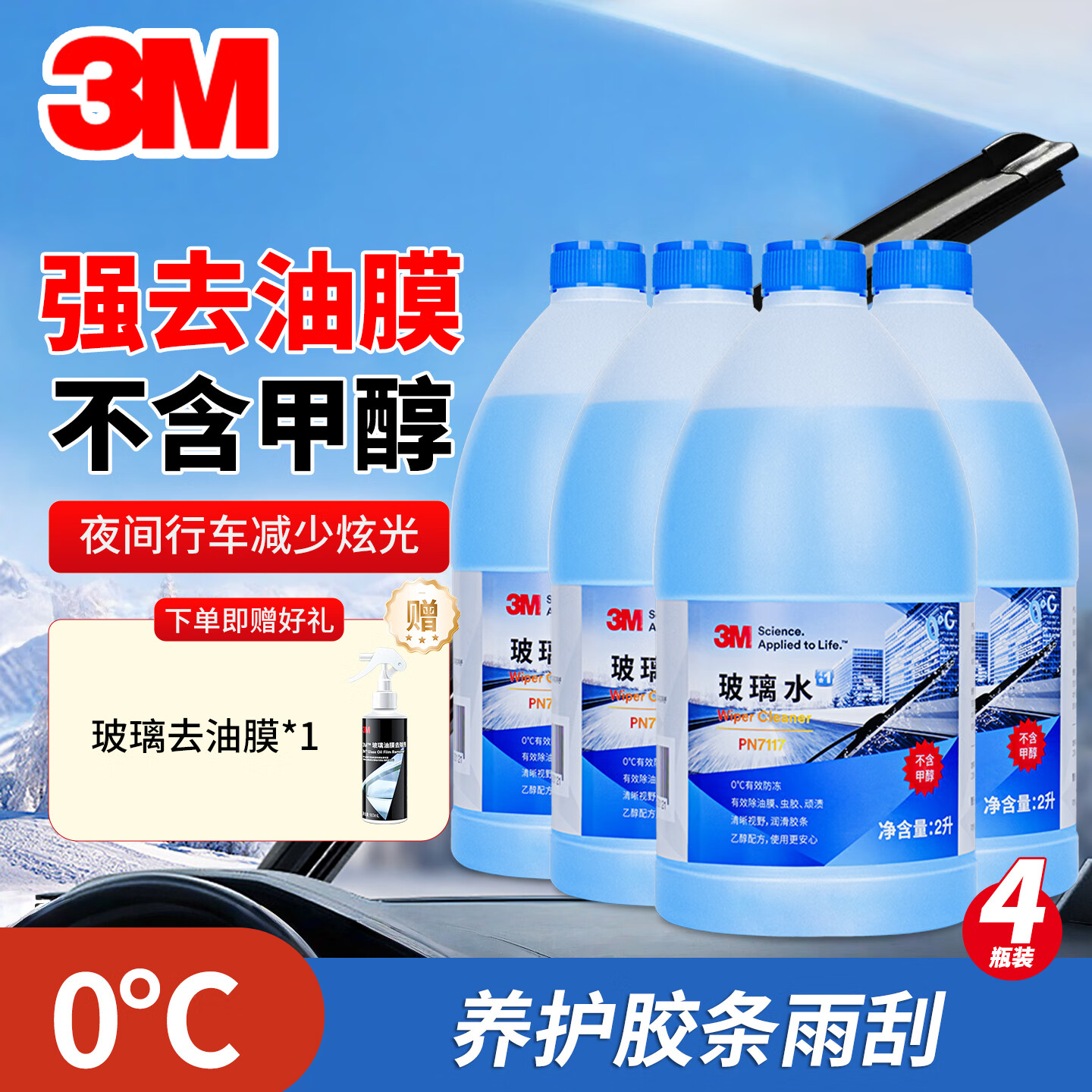 3M强力去油膜7117玻璃水汽车专用乙醇配方四季通用雨刮水4瓶