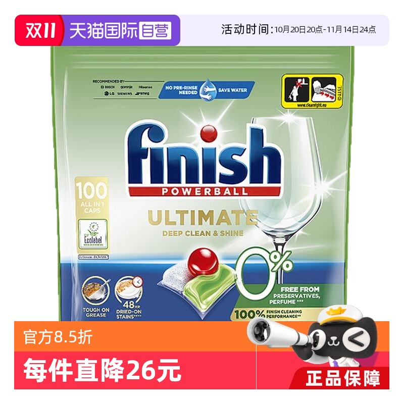 【自营】Finish洗碗块亮碟0添加洗碗块洗碗凝珠洗碗机专用洗涤剂