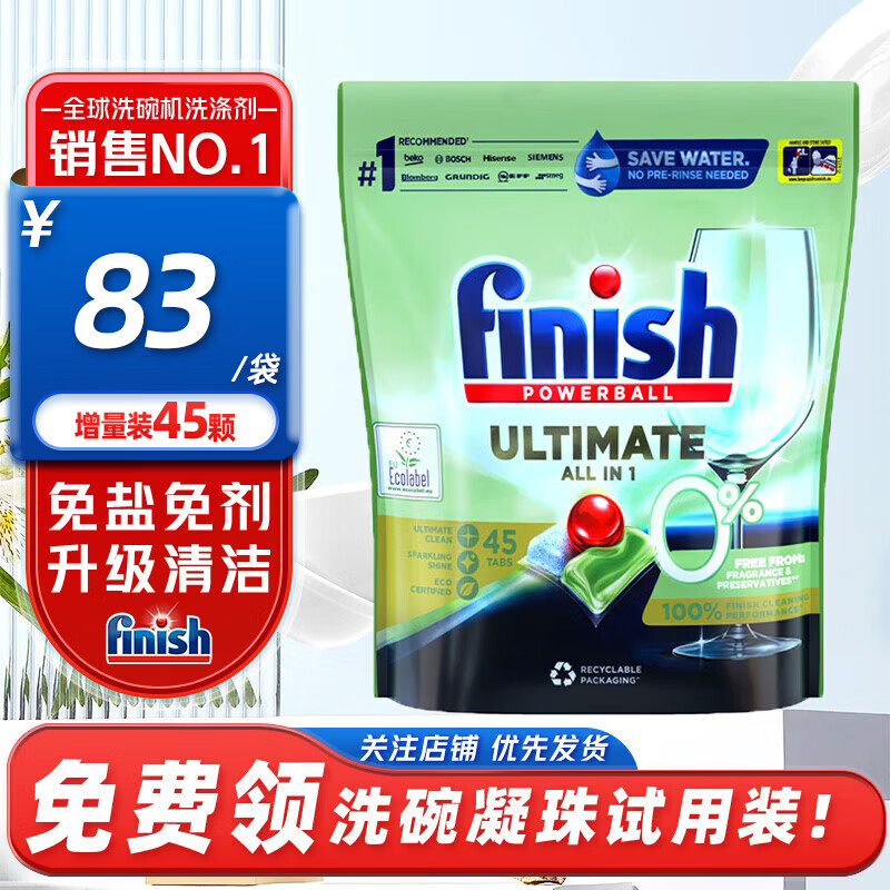 finish洗碗凝珠洗碗块洗碗机专用清洁剂三合一清洗洗碗粉盐剂 0添加洗碗凝珠45颗