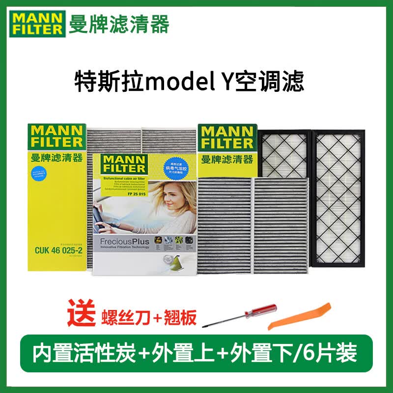 曼牌滤清器特斯拉MODEL Y空调滤芯 整车套装【内置FP+活性炭+外置上+外置下】六片