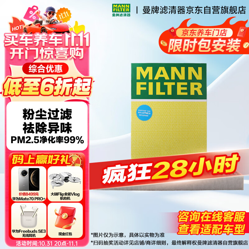 曼牌(MANNFILTER)空调滤清器空调滤芯CUK24013M起亚KX3现代ix25伊兰特悦动朗动名图