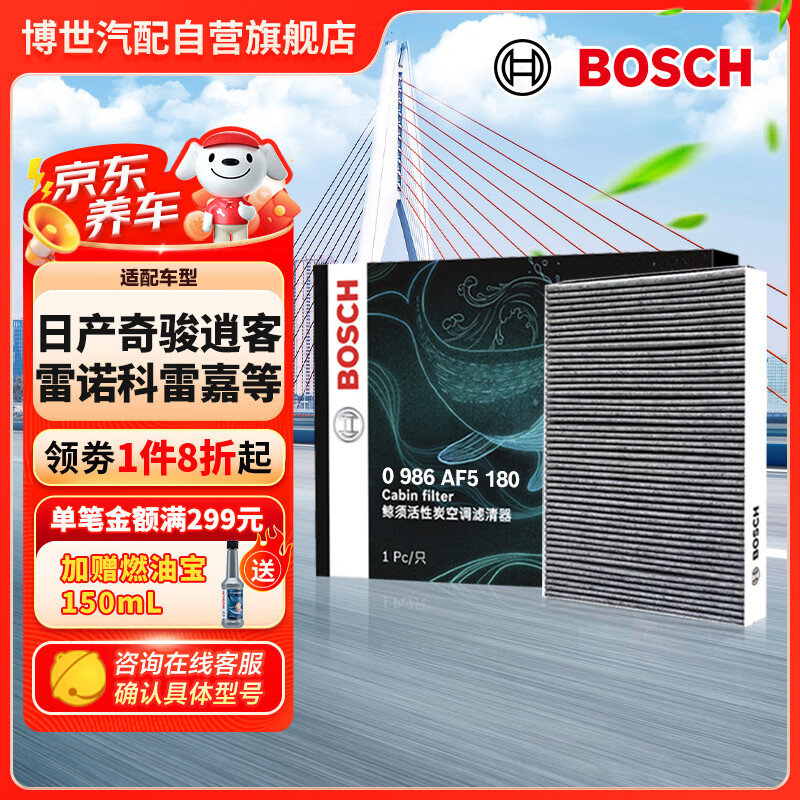 博世(BOSCH)活性炭空调滤芯滤清器5180适配日产奇骏逍客雷诺科雷傲科雷嘉等