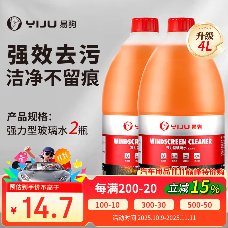 易驹汽车玻璃水去油膜冬季防寒防冻镀膜雨刮水雨刷强力去污去虫胶车用 强效去污洁净无痕 【两瓶装】 -15度