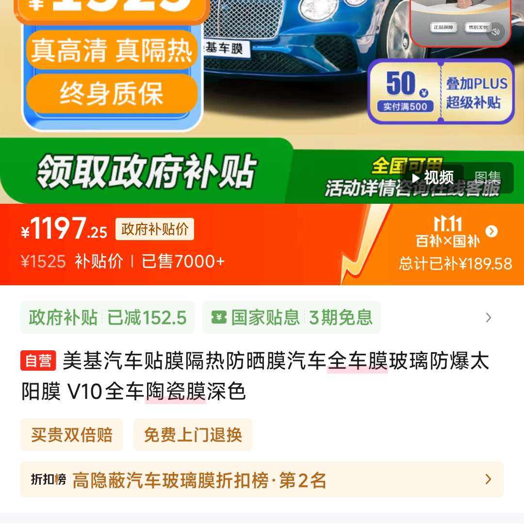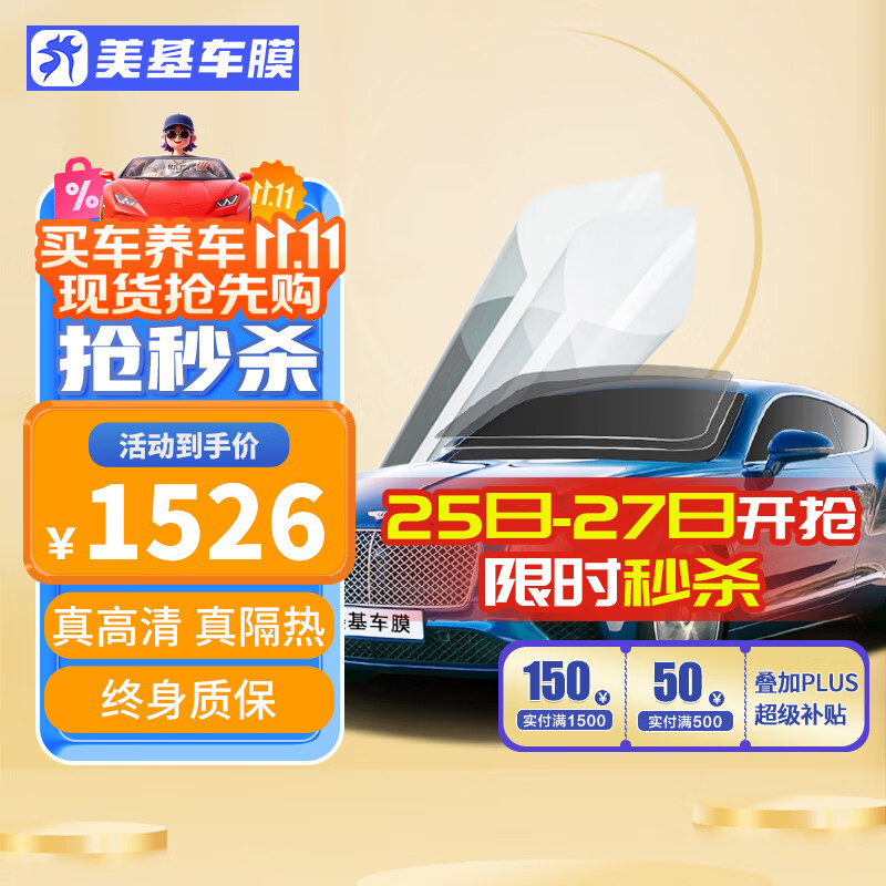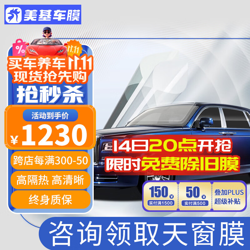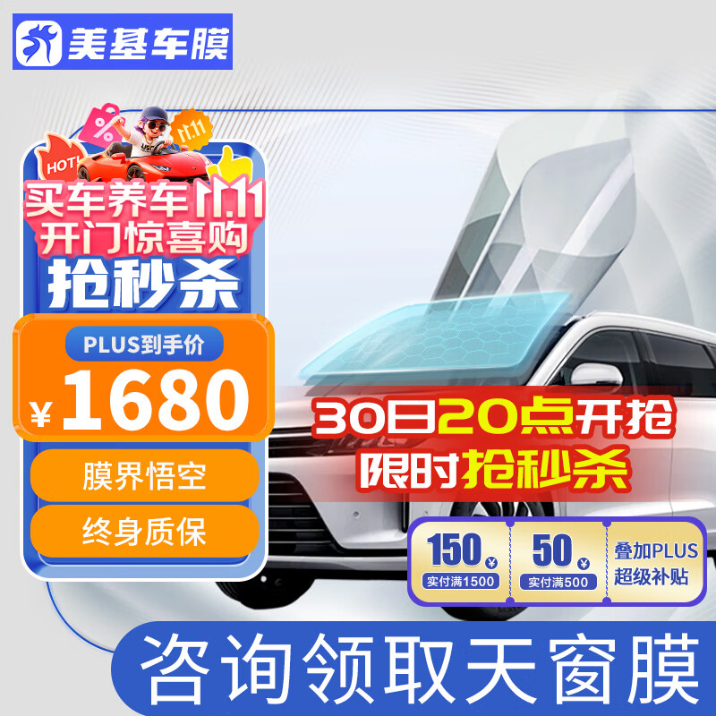 美基(MZJJ)汽车贴膜车膜汽车膜太阳膜隔热膜全车膜车窗玻璃隐私防晒防爆膜 V10氮化钛陶瓷全车膜(高清前挡+深色侧后)