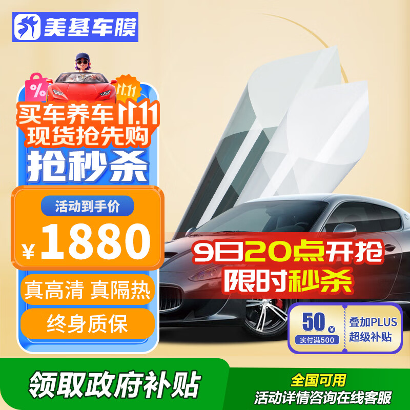 美基(MZJJ)汽车贴膜车膜汽车膜太阳膜隔热膜全车膜车窗玻璃隐私防晒防爆膜 V9氮化钛陶瓷全车膜(高清前挡+深色侧后)