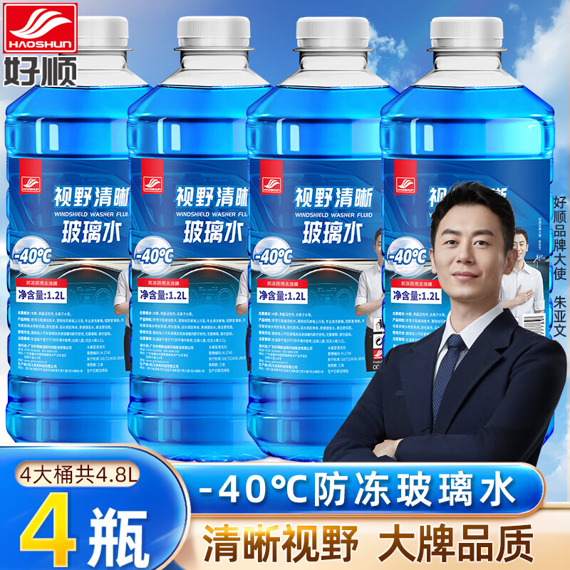 好顺汽车防冻玻璃水雨刮水强去污去油膜镀膜防雨挡风玻璃清洗剂通用型 1.2L*4瓶【-40°】 强去污防冻型