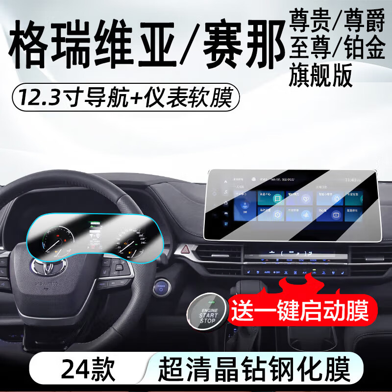 达珀德26款丰田赛那格瑞维亚中控导航屏幕钢化膜塞纳改装内饰保护贴膜 【12.3寸导航超清钢化膜】+仪表软膜