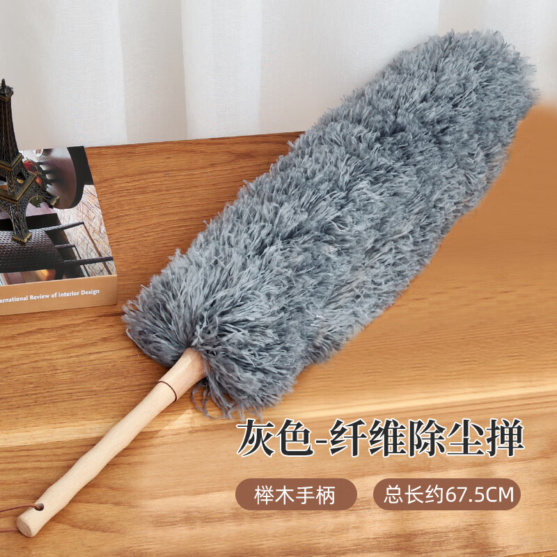 素娘纤维静电除尘掸吸灰扫灰家用长鸡毛掸子不掉毛打扫神器大扫除 榉木柄-灰色长款 约67cm 加厚